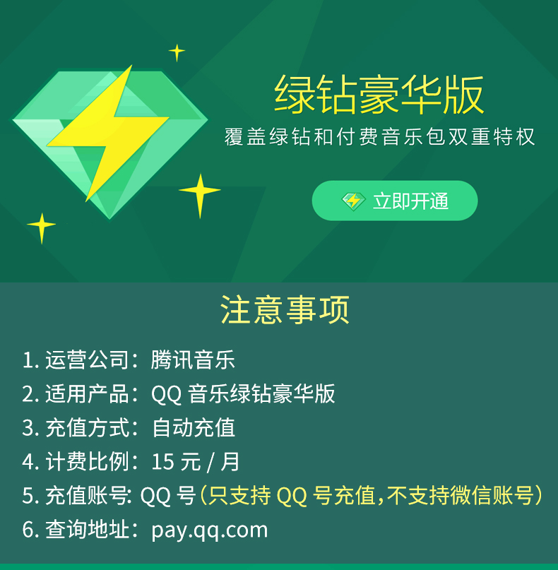 羊毛老张推荐|QQ音乐豪华绿钻年卡(只能充值手机号)